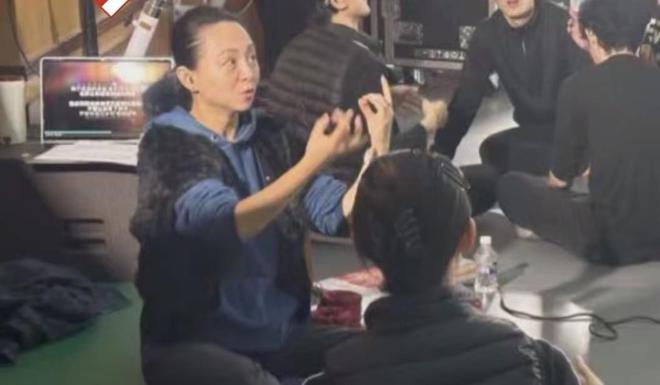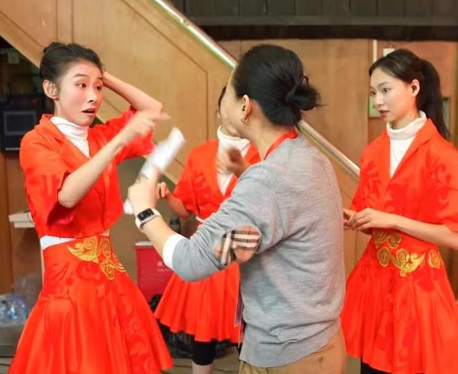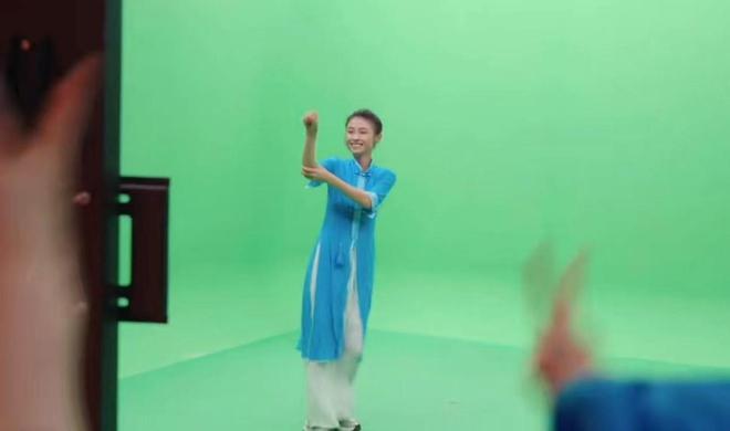 从排练现场也能够看得出来,所有人都拼尽了全力,他们在绿幕前表演,有手语老师和邰丽华现场进行指导。